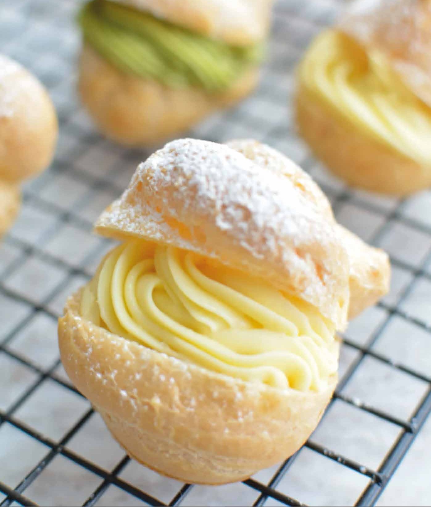 Heat the cream and honey. Slowly combine the mixture with the chopped chocolate. Use a spatula to stir the center of the mixture in a circular motion to obtain a shiny, elastic texture. Maintain this texture throughout the mixing process. As soon as the ganache is at approx. 95-105°F (35-40°C), add the cubed butter. Mix using an immersion blender to make a perfect emulsion. Pour a thin layer of this ganache into a shallow dish and cover its surface with plastic wrap to help it set. Leave to set for at least 2 hours, until it has the perfect texture for piping.