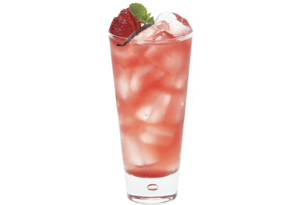 Pour the iced tea prepared as per the instructions into a Juice/Collins glass filled with ice cubes. Flavour with Mixybar Syrup PLUS/Mixybar Syrup, stir gently and finish with soda. Garnish with fresh strawberries and serve with a smile.