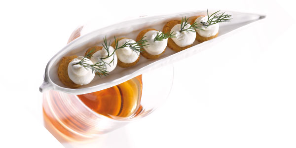 Sablé biscuits with toasted peanuts and Isigny Sainte-Mère Fromage Blanc with freshly chopped herbs