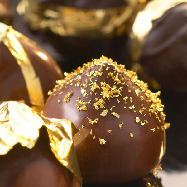 25 Real gold leaf decorations glued, dimensions 8 x 8 cm. Bring finesse and elegance to your creations with these real gold leaves. They are perfect for decorating your plated desserts, desserts, chocolate candies