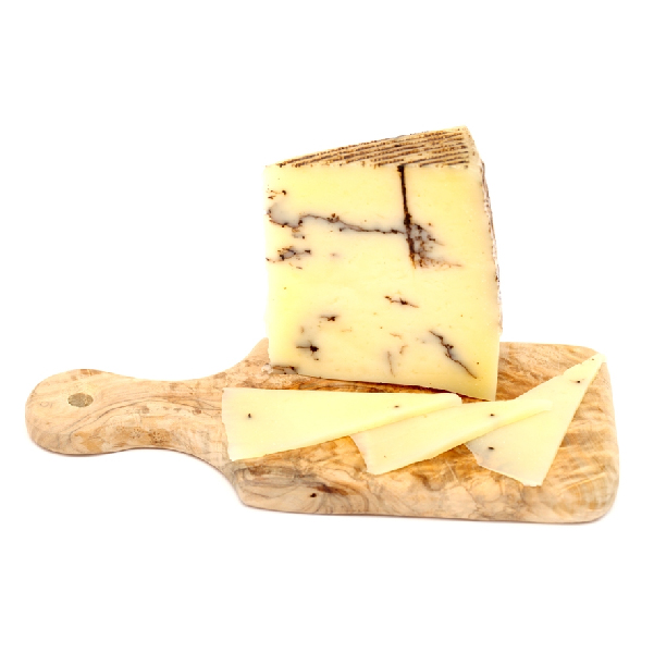 This exceptional cheese is made with the milk from sheep of La Mancha. Ivory-straw like color which progressively gets darker, splashed in black. We have added a very special touch to this cheese with black truffles “melanosporum”, a gourmet ingredient that enhances the spectacular natural flavor of our Castilian cheese. On the nose it is elegant with a hint of dried fruits and truffles, and on the palate it is buttery with an intense aftertaste to this appreciated fungus.