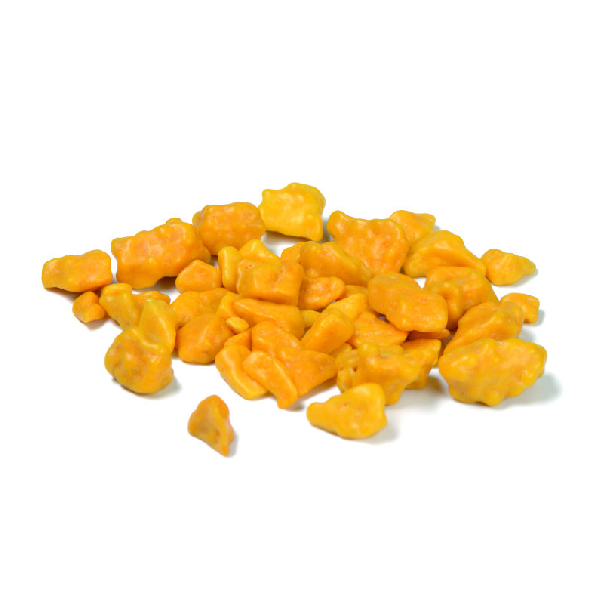 Crispy lyophilized mango coated with a film of cocoa butter that makes it resistant to moisture, being able to use it in yogurts, ice creams, or sauces without softening.