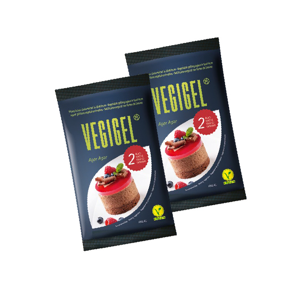 Our agar-agar-leaf is made from red algae and is both tasteless and odourless in the end product. Not only suitable for vegan and vegetarian variants, it’s also ideal for use in very warm regions because, even at hot temperatures, agar-agar remains stable for a long time. Whether for Panna Cotta, Mousse au Chocolat or a wide variety of other popular products, easy handling and flawless results are guaranteed with our agar-agar-leaf VEGIGEL® .