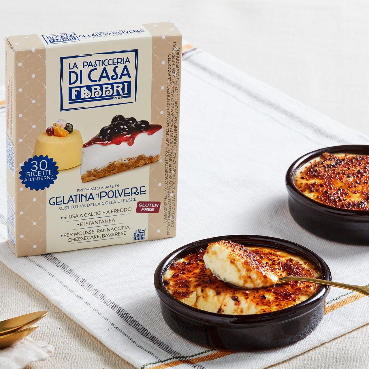 Are you looking for the perfect consistency for your spoon desserts? Fabbri has the product just for you! Gelatin Powder is an alternative to isinglass, designed specifically to achieve the right consistency for all your desserts, to be served with the confidence of having the result of a great pastry chef. Ideal for making mousse, Bavarian cream, panna cotta, puddings and cheesecake. Ready to use, it is a simple and delicate choice for all your creative recipes and you will amaze your guests!