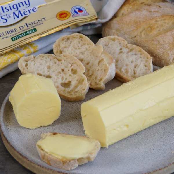 Made with the best traditional creams of Isigny (matured for 16 to 18 hours), it is famous for its golden buttercup colour and its distinctive notes of milk.
